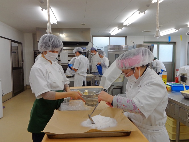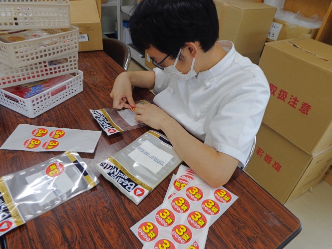 利用者の方の特性に合わせて作業を行っています。主にパン製造の補助業務、クッキー・ラスク等の製造、委託業務(食品の袋詰め等)、施設外就労(箱折)に分かれて作業をします。