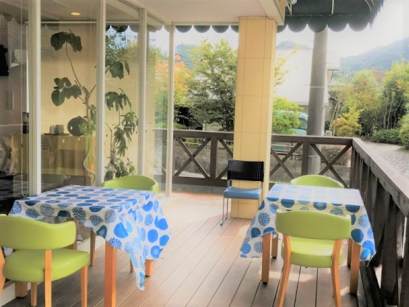 イートインコーナーのテラス席 開放感あふれるテラス席で、焼きたてのパンをその場ですぐに食べられます。心地よい風を感じながら、お好きなドリンクと共に贅沢なひとときをお過ごしください。
