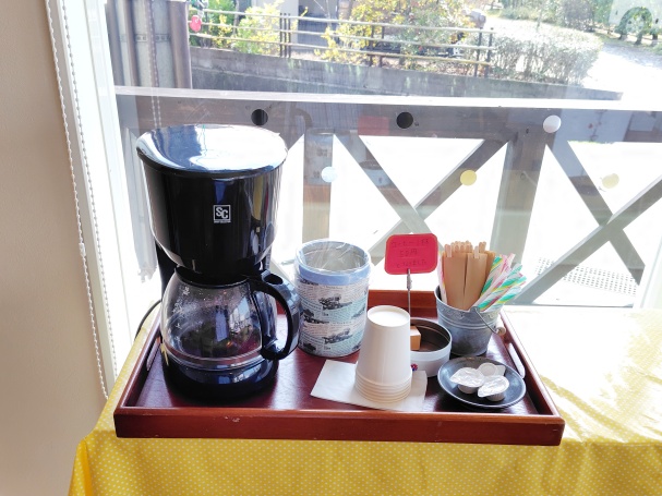セルフコーヒーコーナー(1杯50円) コーヒー豆から丁寧にドリップした、香り高い一杯をお楽しみいただけます。本格的な味わいを、セルフサービスならではの気軽なお値段でどうぞ。